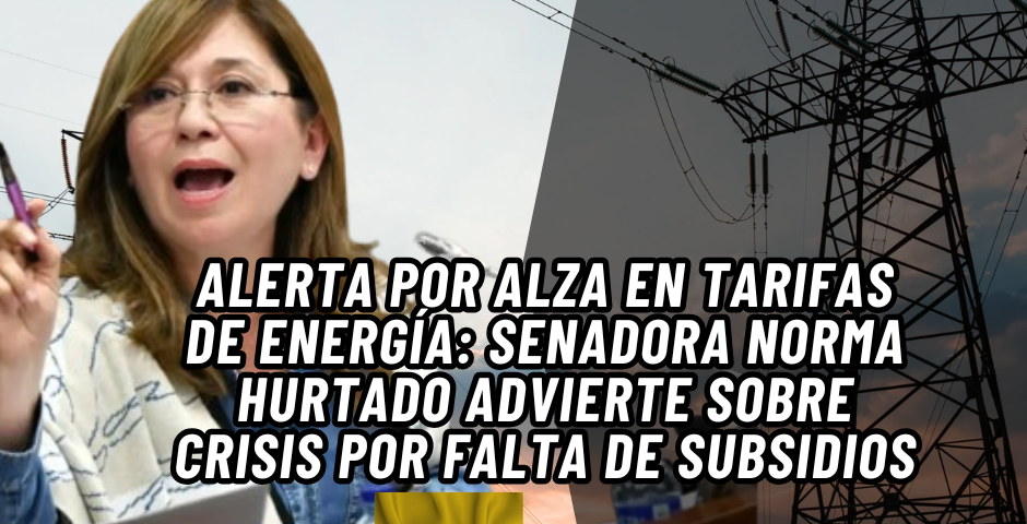 La senadora Norma Hurtado, del Partido de la U, lanzó una fuerte advertencia sobre el inminente aumento en las tarifas de energía en todo el país debido al retraso del Gobierno Nacional en el pago de los subsidios destinados a los estratos 1, 2 y 3