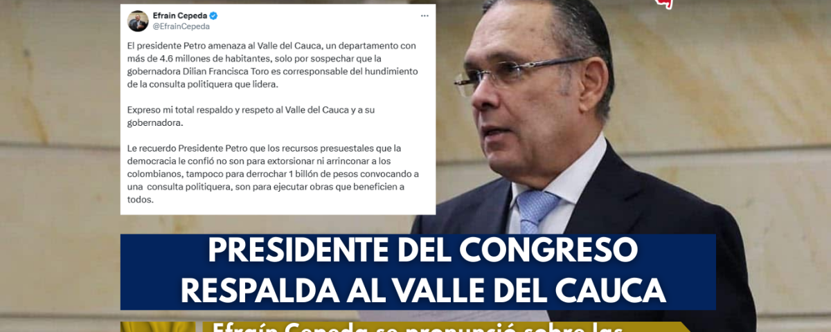El presidente del Congreso, Efraín Cepeda, lanzó una dura advertencia al presidente Gustavo Petro tras sus recientes declaraciones contra la gobernadora del Valle del Cauca, Dilian Francisca Toro, a quien el jefe de Estado señaló como responsable de haber influido en el hundimiento de la consulta popular promovida por el Gobierno en el Senado.