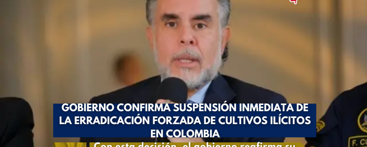 El ministro del Interior, Armando Benedetti, confirmó este jueves que la erradicación forzada de cultivos ilícitos en Colombia se suspende de manera inmediata, en cumplimiento de la orden dada por el presidente Gustavo Petro. La decisión marca un giro en la política antidrogas del país y refuerza la estrategia oficial de priorizar la sustitución voluntaria con las comunidades.