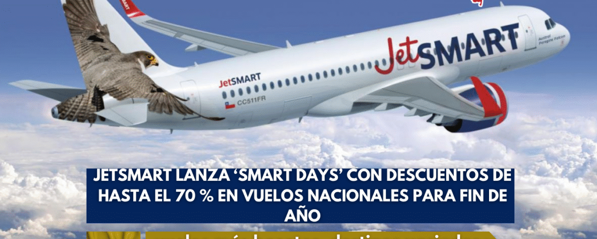 A pocas semanas de terminar el 2025, el movimiento de viajeros en Colombia empieza a intensificarse con miras a la temporada de vacaciones de diciembre. En medio de este panorama, la aerolínea de bajo costo JetSmart anunció su campaña ‘Smart Days’, con descuentos de hasta el 70 % en vuelos nacionales, convirtiéndose en una de las ofertas más agresivas del mercado aéreo en esta recta final del año.