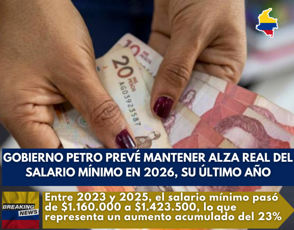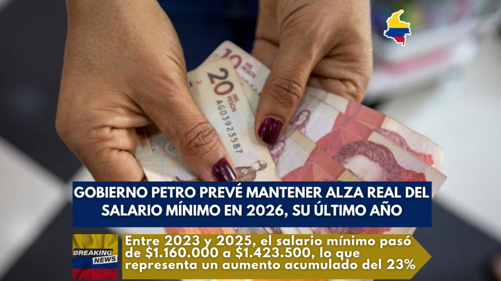 Gobierno Petro prevé mantener alza real del salario mínimo en 2026, su último año