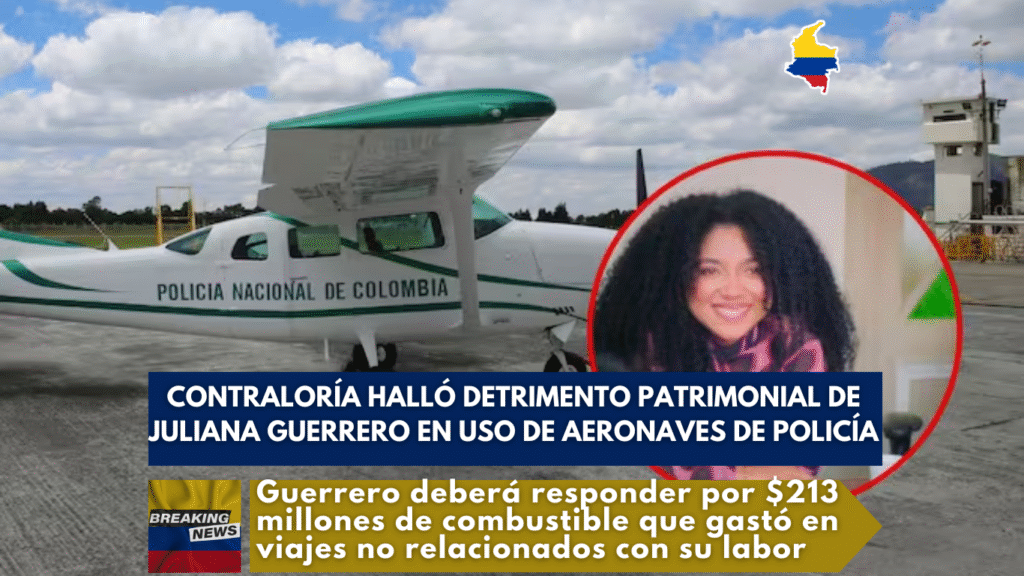 La Contraloría General de la República concluyó que Juliana Guerrero, exfuncionaria del Ministerio del Interior, utilizó aeronaves de la Policía Nacional para actividades ajenas a sus funciones, generando un detrimento patrimonial de 213 millones de pesos en combustible durante cinco vuelos realizados en junio de 2025.
